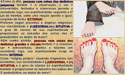 Lembrando que estes são 3 tipos básicos de personalidade, é como se fosse um esteriótipo geral, pois em cada um destes pés a muitas diferenciações e claro não haveria como retratar todos neste espaço, afinal a especificidade de cada pé impressiona, o objetivo é apenas identificar alguns traços que são semelhantes a todos.