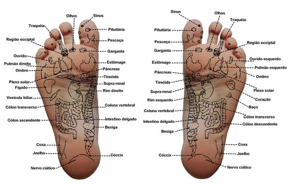 - Deitado, bem relaxado, mantenha a respiração tranquila. Pressione suavemente com a ponta dos dedos, durante alguns segundos, cada um dos pontos, seguindo a ordem numérica de 1 a 17, de acordo com a imagem abaixo. Exerça pressão apenas ao soltar o ar dos pulmões, quando a barriga afunda.